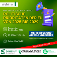 Verbandsstoff Webinar „Politische Prioritäten der EU von 2025 bis 2029 - Was sagen EUD und JEF dazu?“